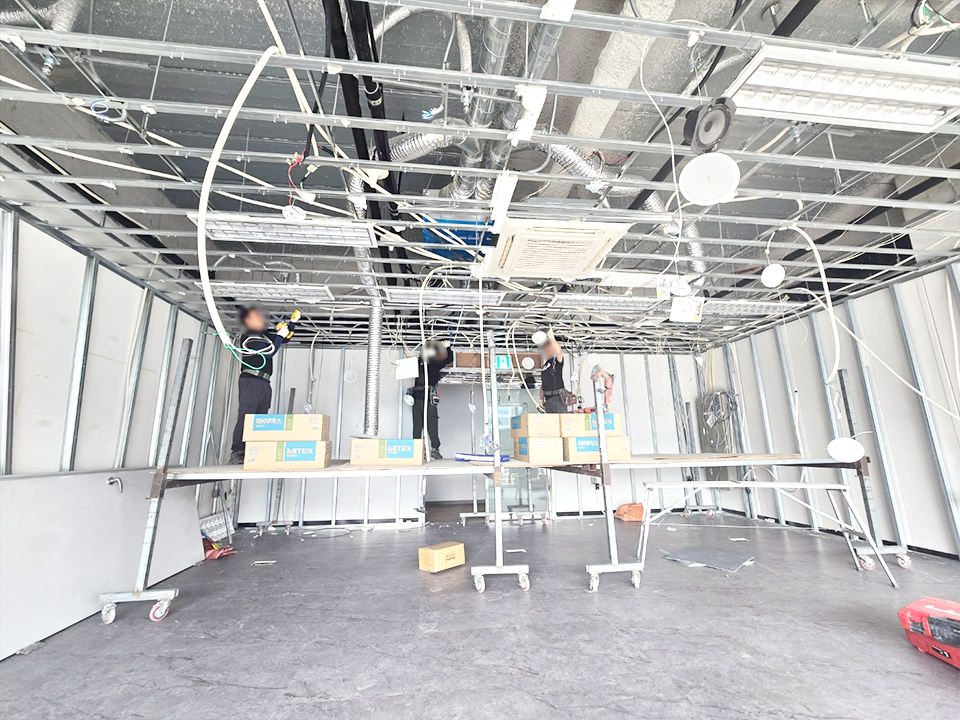 조명과 스프링쿨러부분만 구멍을 내주고, 나머지는 모두 덮게끔 공사를 진행하였습니다.