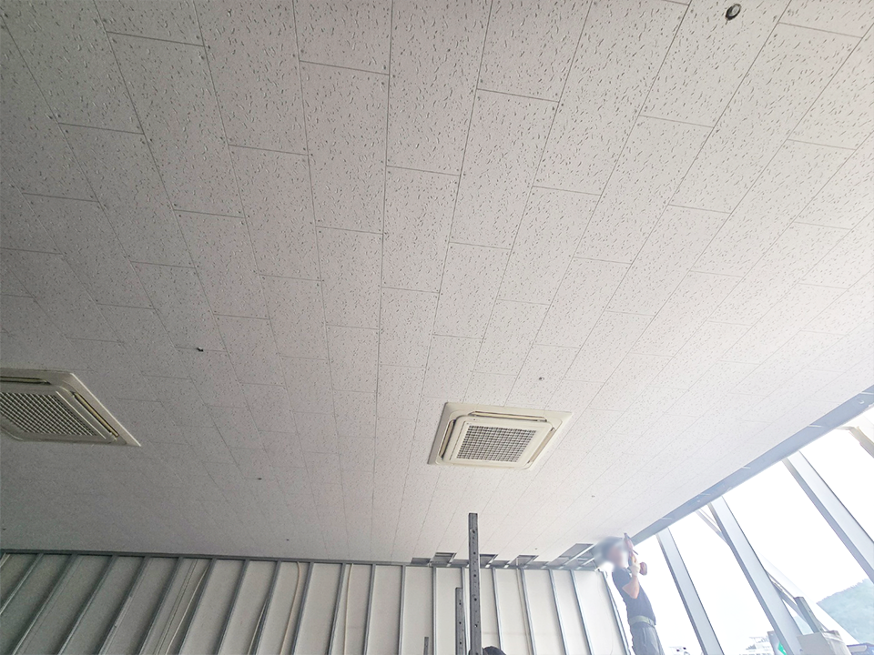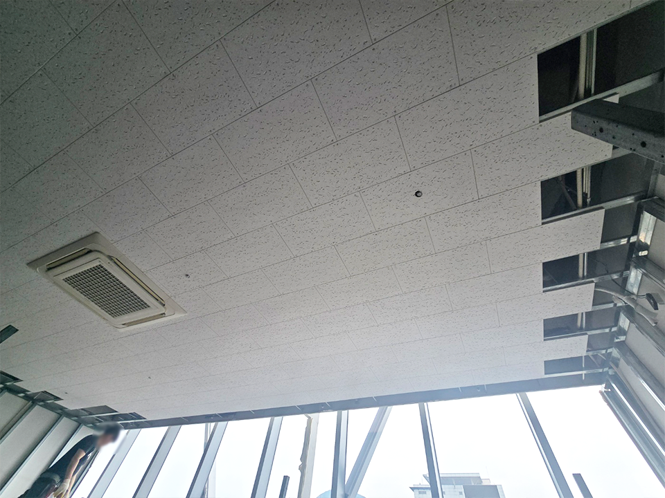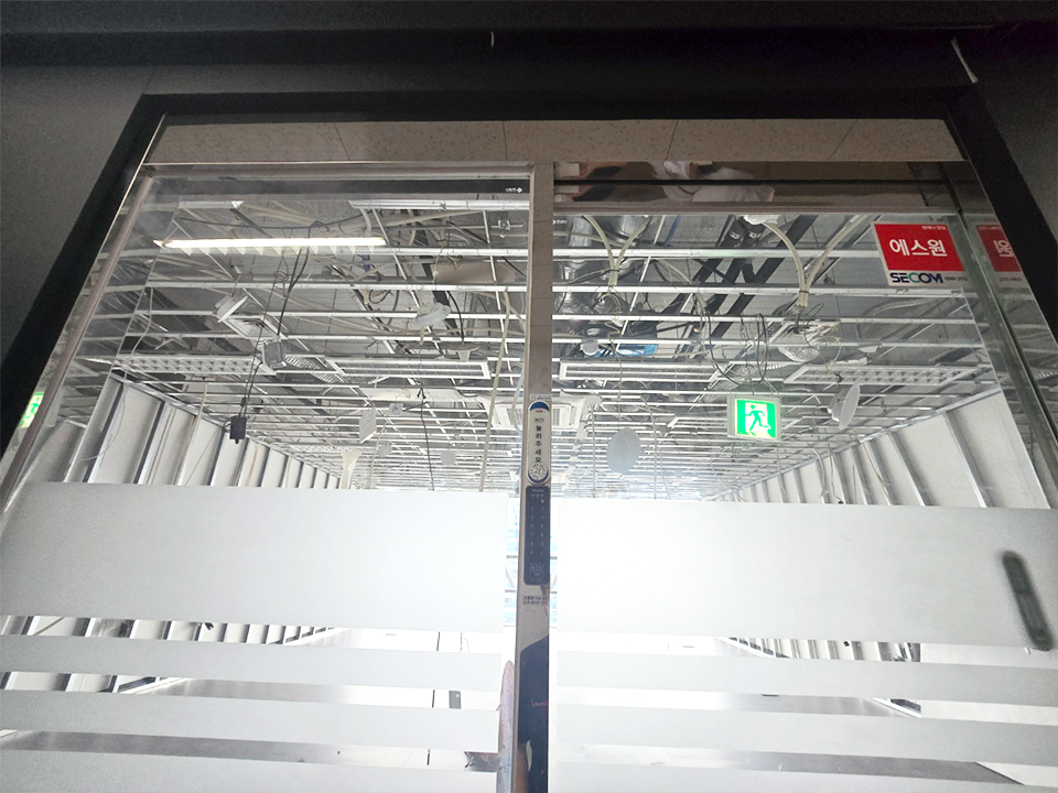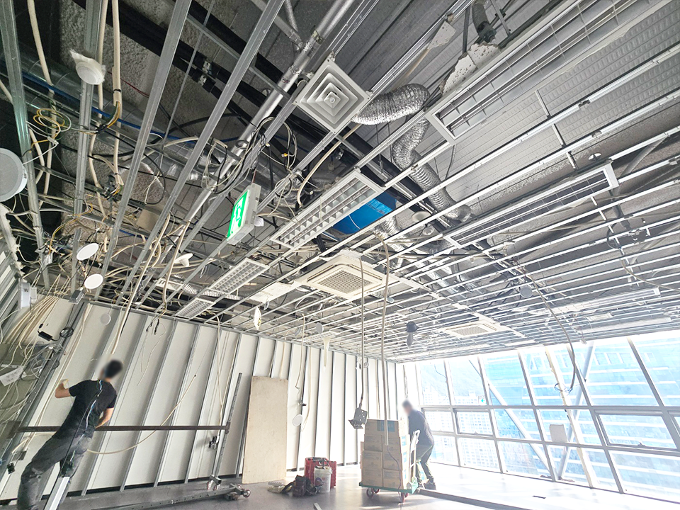 기존 텍스 철거 + 경량철골 재사용 + 새 텍스 시공현장입니다.